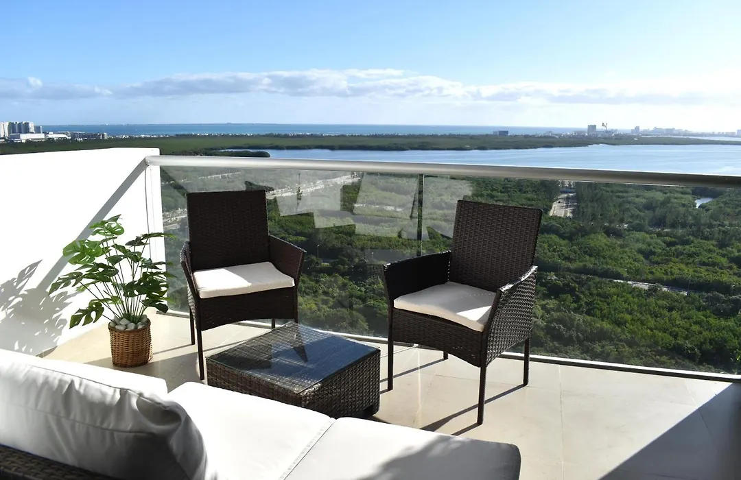 Terraza Con Vista Mar Y Laguna 2 Recamaras Cancun Centro Malecon Americas